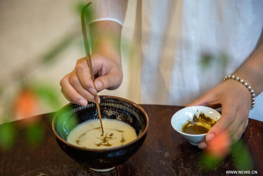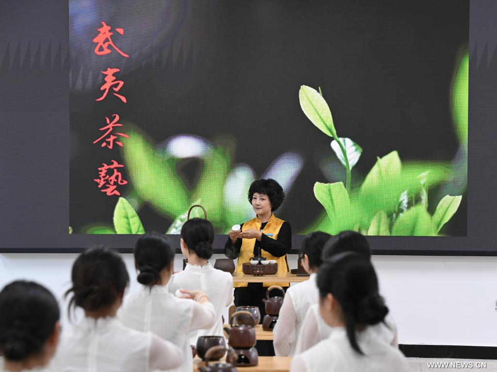 تظهر الطالبات في الصور وهن يتعلمن فن الشاي في مدرسة مهنية في مدينة ووييشان بمقاطعة فوجيان جنوب شرقي الصين.